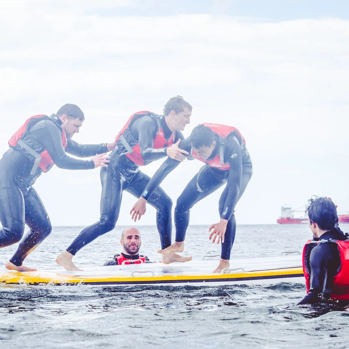 You’ll be with us for around three hours. Around 1.5-2 hours of that is on the water. Our price includes all required boats, boards, safety equipment and wetsuits. Your group will be led by qualified and professional instructors throughout.